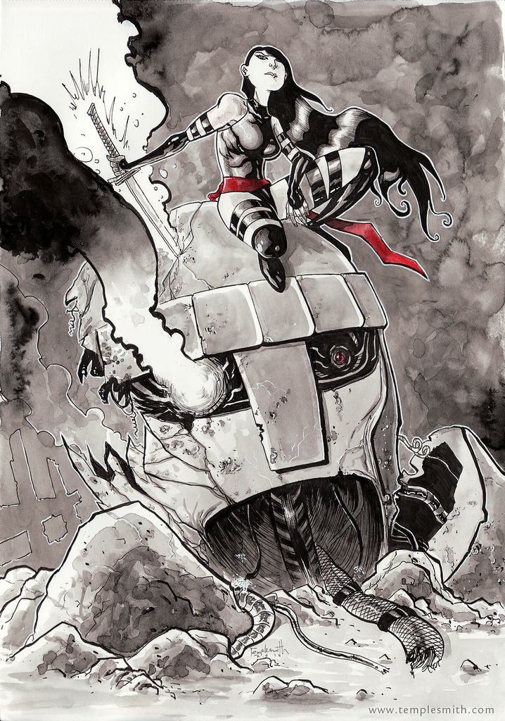 Excellent pencil, ink and watercolor on 10×14 bristol board Psylocke & Sentinel painting by artist Ben Templesmith! It is up for sale right now on eBay. Follow Ben here on Tumblr to keep up on his recent work.