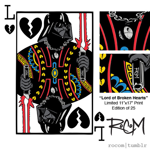 Limited Edition 11×17 Lord of Broken Hearts print at Etsy for $30. The artist ROCOM is part of the Tumblr network so make sure that you follow him.