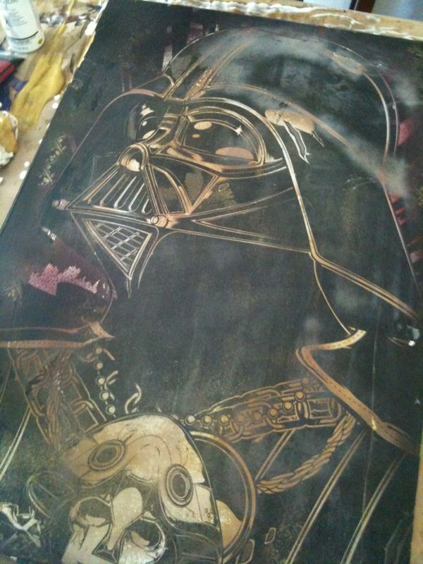 Joshua Smith never fails to amaze with his work. This 2ft x 3ft wheatpaste print of Vader is for his up coming show at Neon Forest.