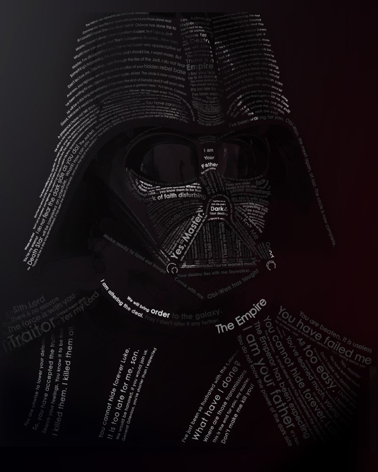 Even in typographic form, Vader still looks like the king of ass stomping and hand chopping. Excellent Star Wars artwork by Evan Travelstead!