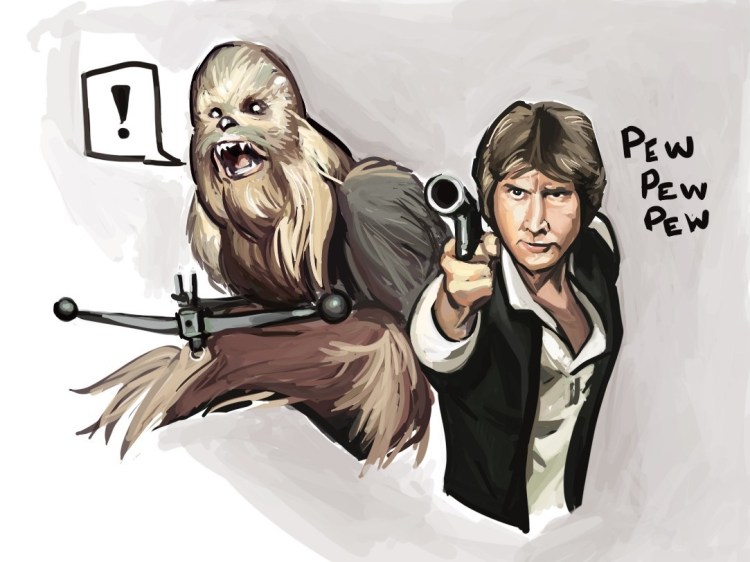 Such a cool Han and Chewie 40" x 27" Poster up for sale on Etsy ($40) by artist Brad collins. Pew Pew Pew!