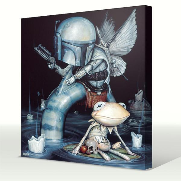 There are so many amazing things about this Boba Fett / Kermit painting by Greg Simkins. Kermit is in a world of hurt and he has no clue…