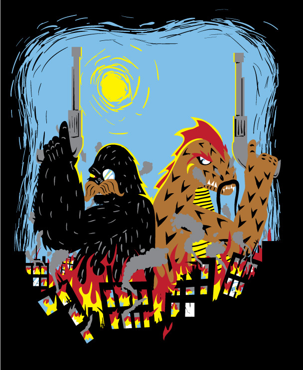 George and Lizzy are mustached gentlemen in this work in progresss Rampage video game redesign by Jonah Block. I like the name and the game!