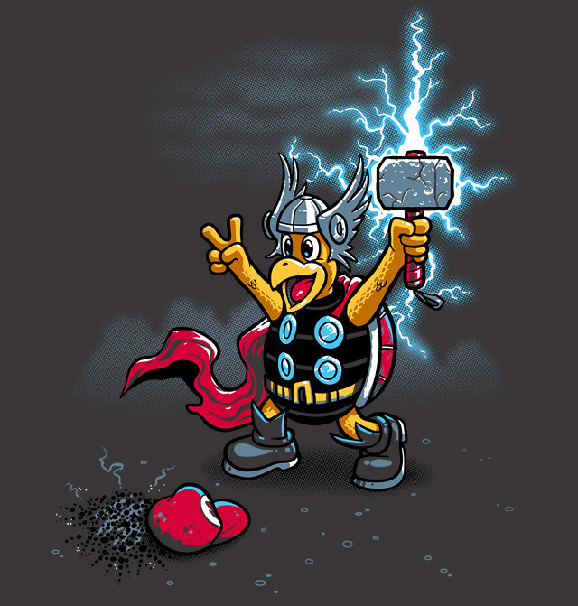 Hammer Bro uses Thor’s Mjolnir hammer to get his revenge on Mario. Vote this Mario Bros / Thor design up at Threadless!