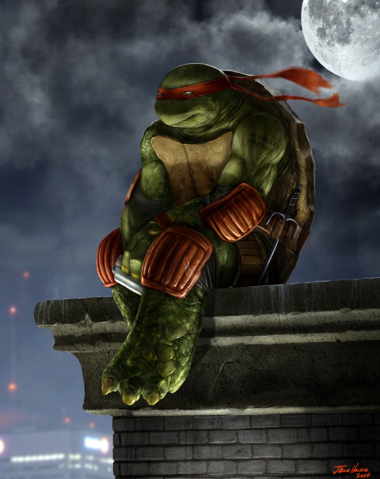 Behind the scenes, Raphael had to hit the whiskey flask to get through each day. Awesome TMNT redesign by Jason Heuser. Check out his RockSteady!