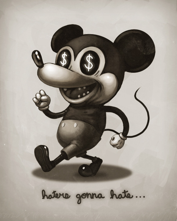 “What can I say? I love painting Mickey Mouse. This is from a doodle a couple months ago that developed into this sort of “haters gonna hate” strut and I couldn’t help but continue on that path.” – Mike Mitchell
