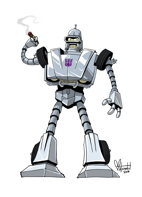 Epic Transformers / Bender mash up illustrated by Nina Matsumoto. The design is based off of the Werecar version of Bender in Futurama episode “The Honking”.