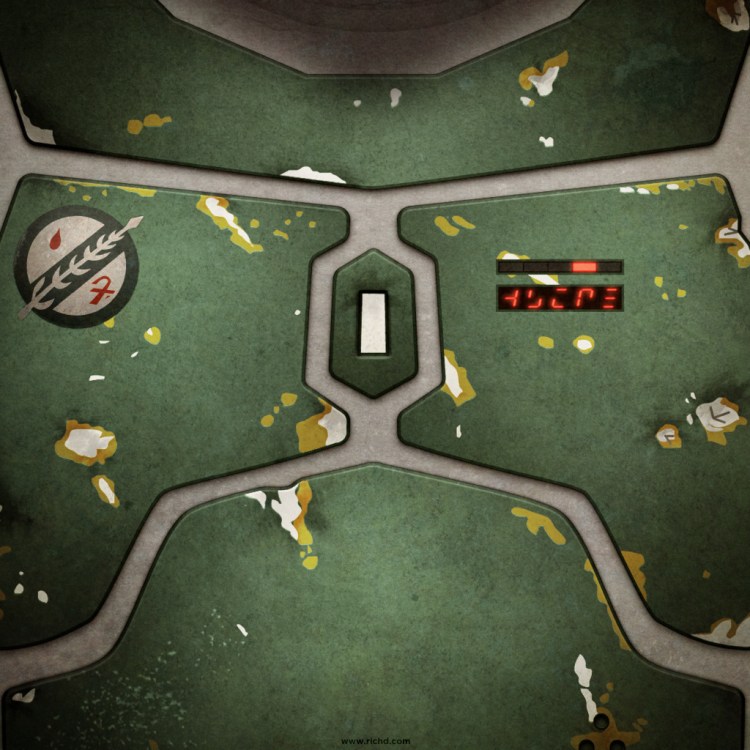 Get an excellent Boba Fett or Jango Fett Armor iPad wallpaper created by Rich Dellinger at Dribbble. Scale it down in Photoshop to fit your phone too!