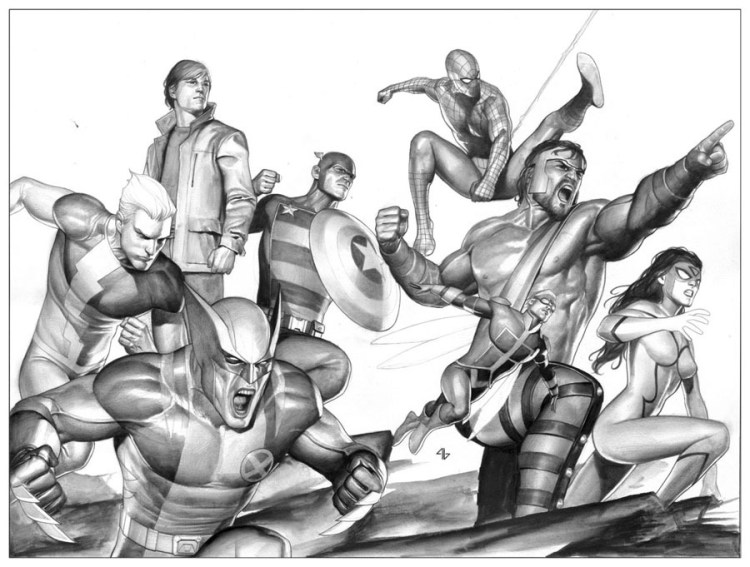 Hey guys. My wife Tamsin and I are raising money for Marie Curie Cancer Care who run the hospice which took good care of Tams’ mum in her last days. We are raffling off a very large piece of my original art which was published as a double cover by Marvel. If you’d like to win the art and help out a worthy cause, or even if you don’t want the art but would like to donate, please go here: