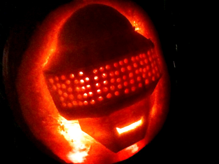 Awesome Daft Punk pumpkin art for the Halloween season by Volpin Props!