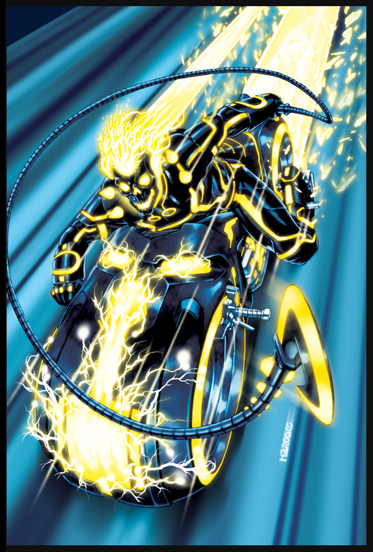 Ghost Rider gets a ridiculously bad ass TRON upgrade thanks to Mark Brooks. Check out more of his TRON-ified comic heroes HERE.