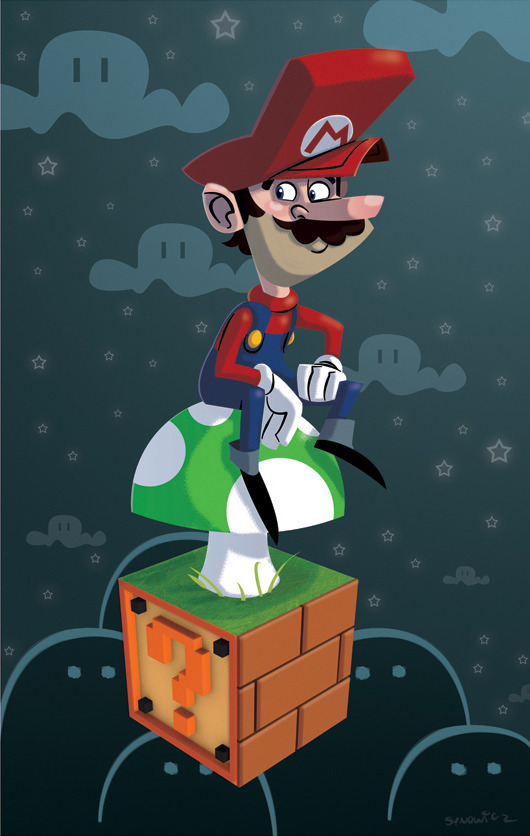 Why quickly devour the 1up when you can relax for a bit? Excellent use of 3D, shading and colors in this illustration by Matt Synowicz.