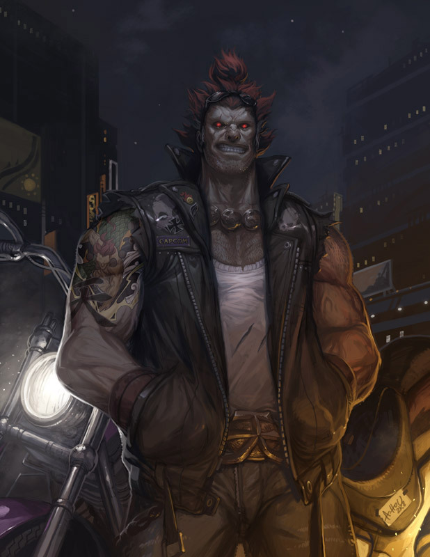 Akuma is one bad ass dude, so why not have a rad motorcycle to go along with the attitude. Excellent Street Fighter fan art by Andrew Hou.