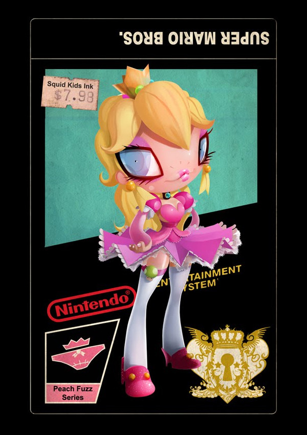 Andrew Wilson has given the Super Mario Bros. NES box art a Princess Peach treatment. Such a unique character design.