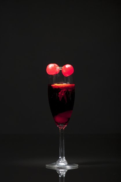 Pour the Kahlua and Creme de Noyaux in a flute glass. Then, pour in the spoonful of creme, but do not mix. Garnish the top with two cherries for eyes.