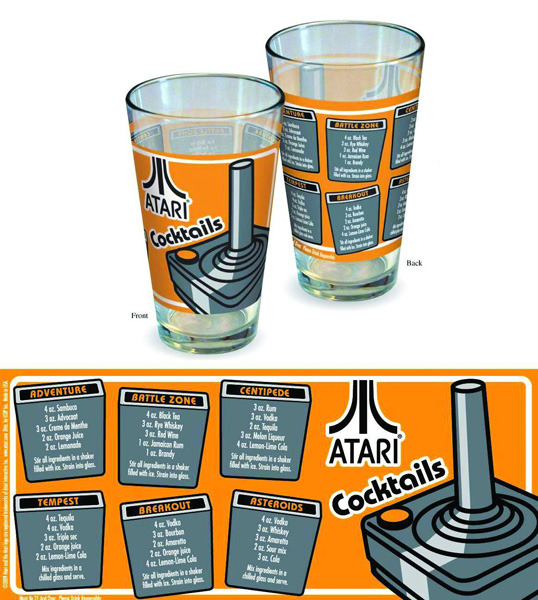 This Atari Pint Glass isn’t just a way to show geek pride while drinking beer. It’s also a guide on how to make six different cocktails, all inspired by classic Atari games! I’ll take one “Asteroids,” please. You can try the “Centipede.”