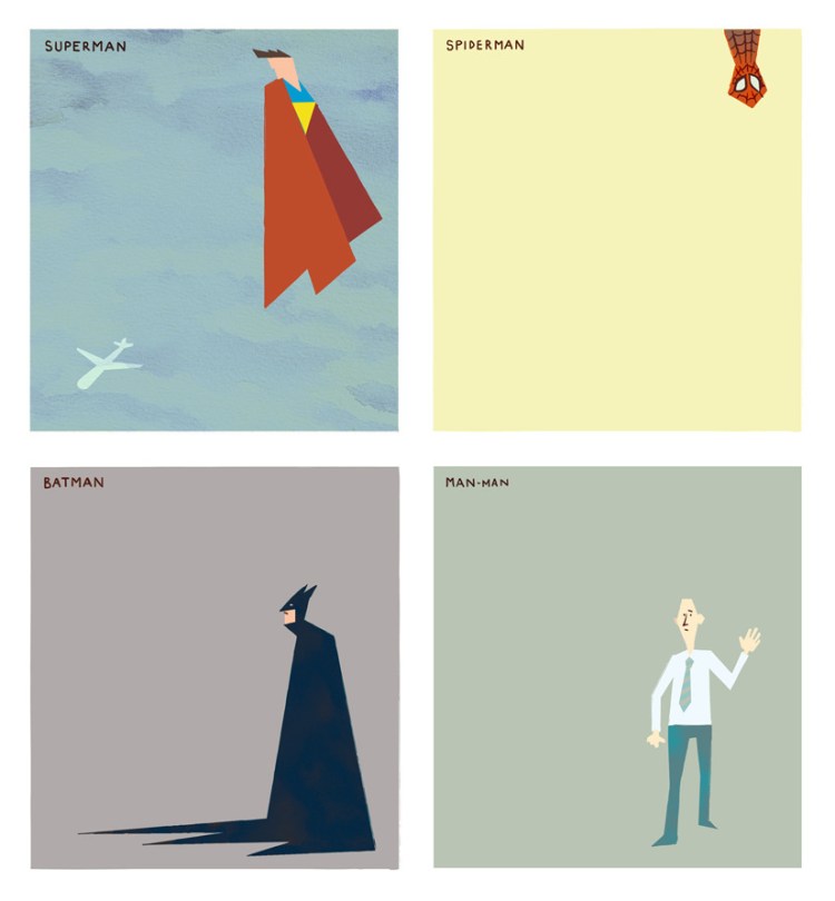 Four prominent heroes in today’s culture illustrated by Robert Ball. Hell, we even made the cut as Man-Man! I feel like fighting crime now…