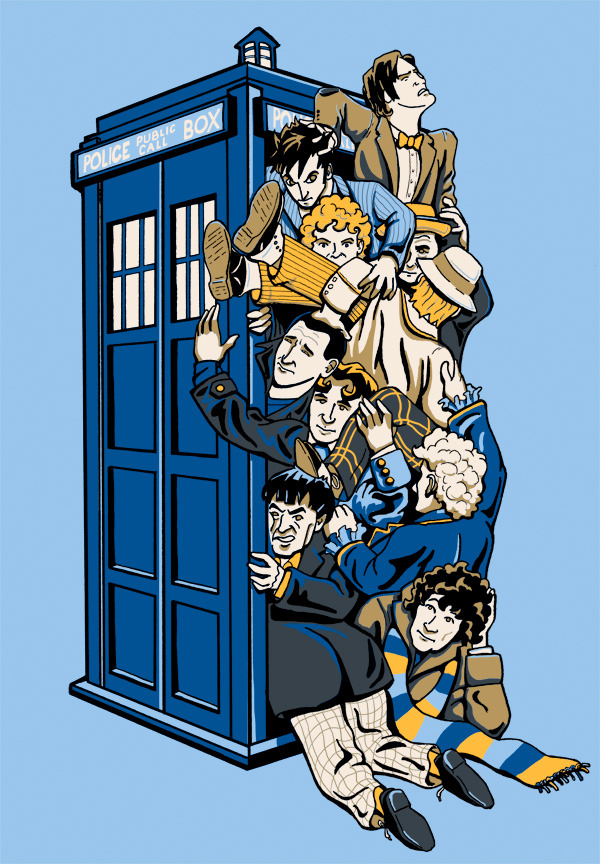 Ian Leino’s awesome Doctor Who shirt design, Who’s Who, will be on sale at TeeFury Mon (11/22) for only $9!