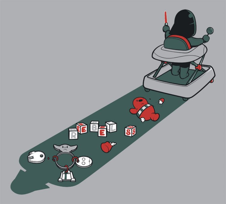 Baby Vader is crushing all rebel toys with his new Imperial Walker thanks to Ian Summers! This shirt design is on sale today only at RIPT Apparel ($10).