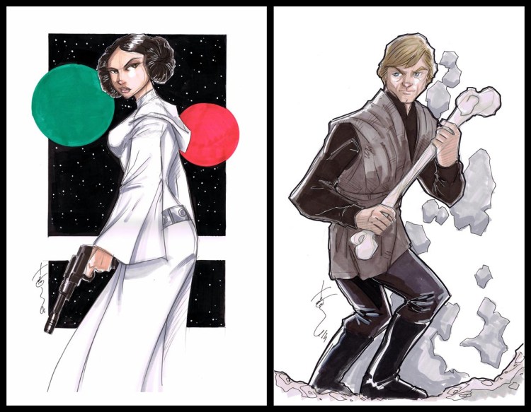 Princess Leia and Luke Skywalker are a couple of bad asses in this two part illustration created by artist Tom Hodges.