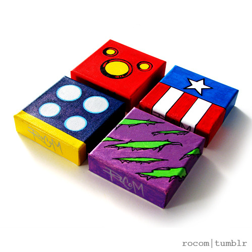 ROCOM put together a rad series of Avengers 5” x 5” paintings! Get more info on how you can make them yours at his Etsy store.