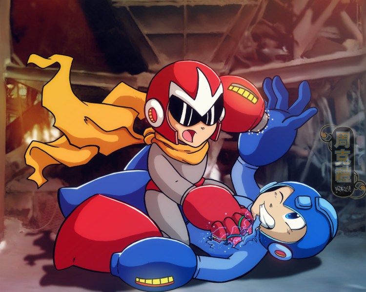 Commission – Proto vs Mega by Christopher Jones (deviantART) (Twitter)
