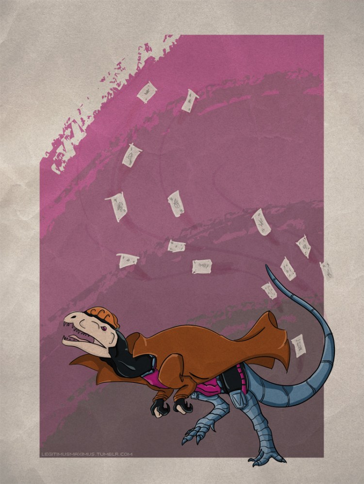 It looks as if Gambit was turned into a prehistoric Dilophosaurus! Another excellent illustration by David Resto. Nightcrawler and Deadpool coming soon.