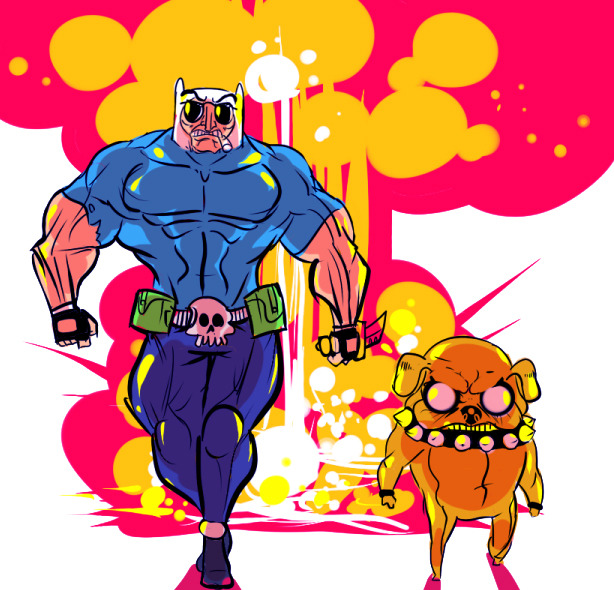Finn and Jake from Adventure Time just got pumped up with steroids in this awesome / quick illustration by ShwigityShwonShwei. It’s Kick-Ass Time!