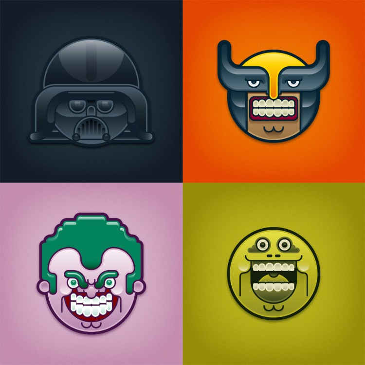Four familiar faces with a new stylized look by Marco Romano. Wolverine, Joker and Slimer all look happy as hell. Vader, not so much.