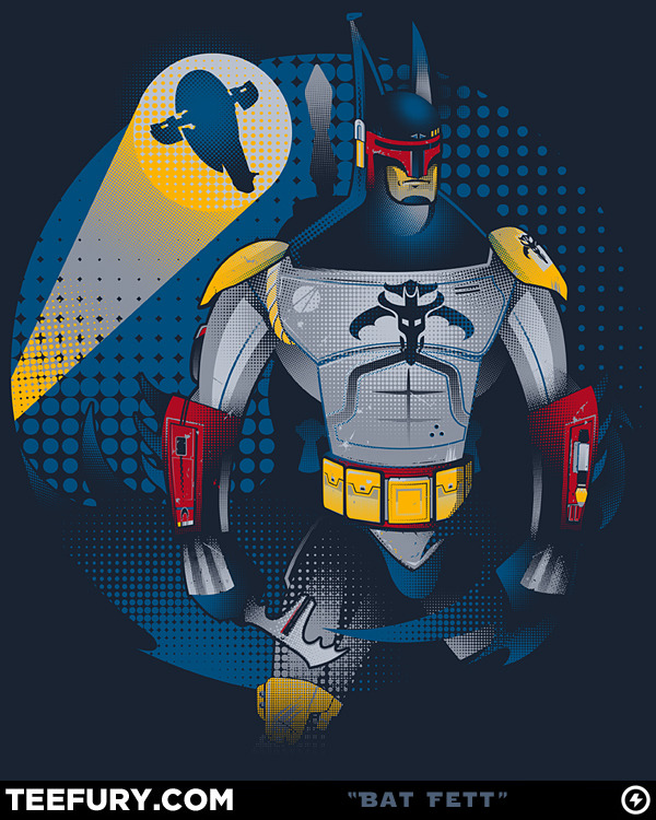 Batman and Boba Fett together as one would just be unstoppable! This great shirt by Barnaby Bocock is on sale Sat (12/25) at TeeFury!
