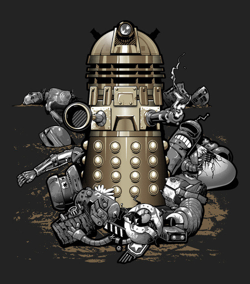 There can be only one Robot left standing! This rad shirt design by Jimiyo is available at RedBubble ($24) or buy the design as a print at Society6 ($26+).