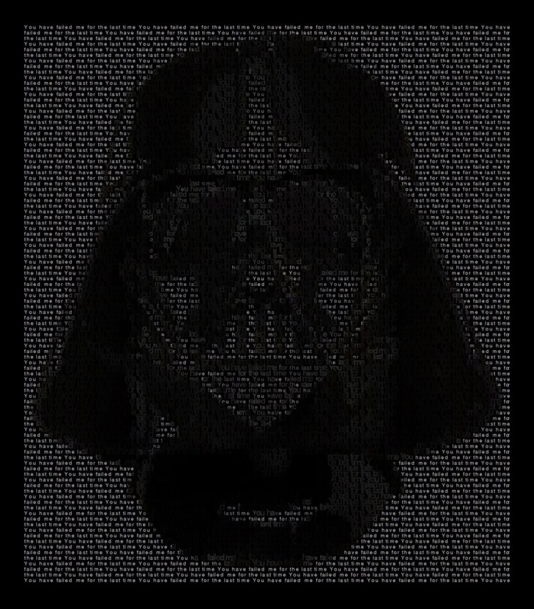 Darth Vader has been reconstructed with only the use of the force and typography thanks to artist tind. “You have failed me for the last time”