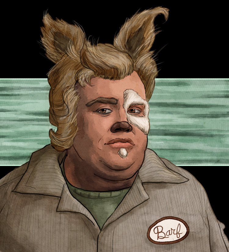 The half man, half dog (mog) known as Barfolomew from Spaceballs gets a stylized Luke Denby tribute illustration. (Spaceballs Halloween)