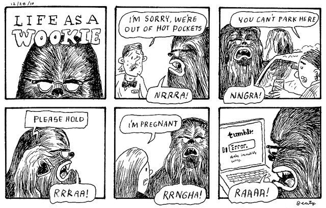 Check out the hilarious trials and tribulations that a Wookiee faces on a daily basis by cartoonist / coder Nate Beaty. More can be found HERE.