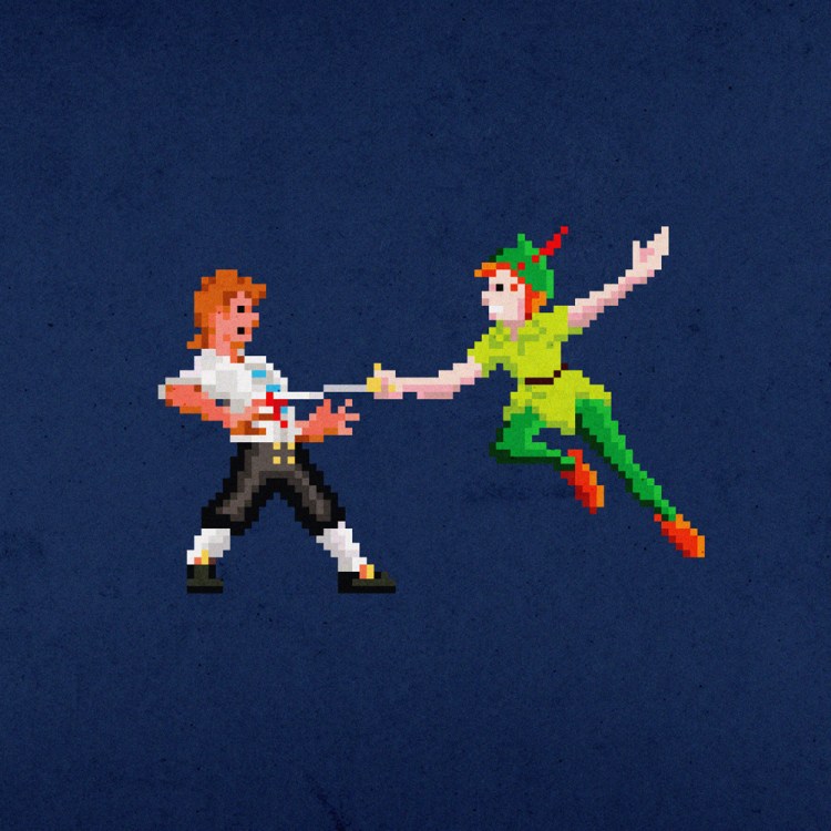 The “Mighty Pirate” Guybrush Threepwood got shanked by Peter Pan! Excellent Monkey Island / Peter Pan mash up design by Aled Lewis.