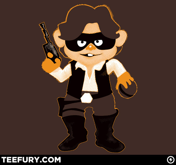 Star Wars and McDonalds crash together to form an intergalactic burger smuggler named “Hanburlgar”. Available Friday (1/21) at TeeFury for $9.