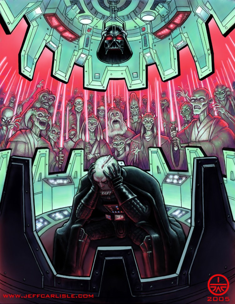 Darth Vader’s worst nightmare has been brought to light by artist Jeff Carlisle. Who wouldn’t be afraid of every slain Jedi coming back to get their revenge?
