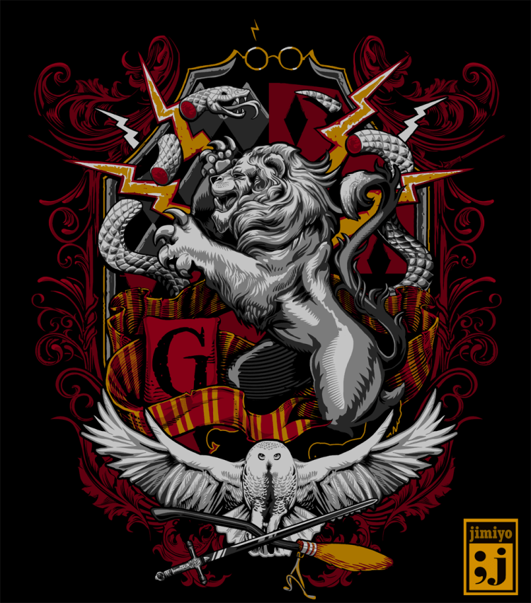 Jimmy Benedict took it into his own hands and made the Gryffindor Crest from Harry Potter look 100% bad ass. Bring on the shirt!