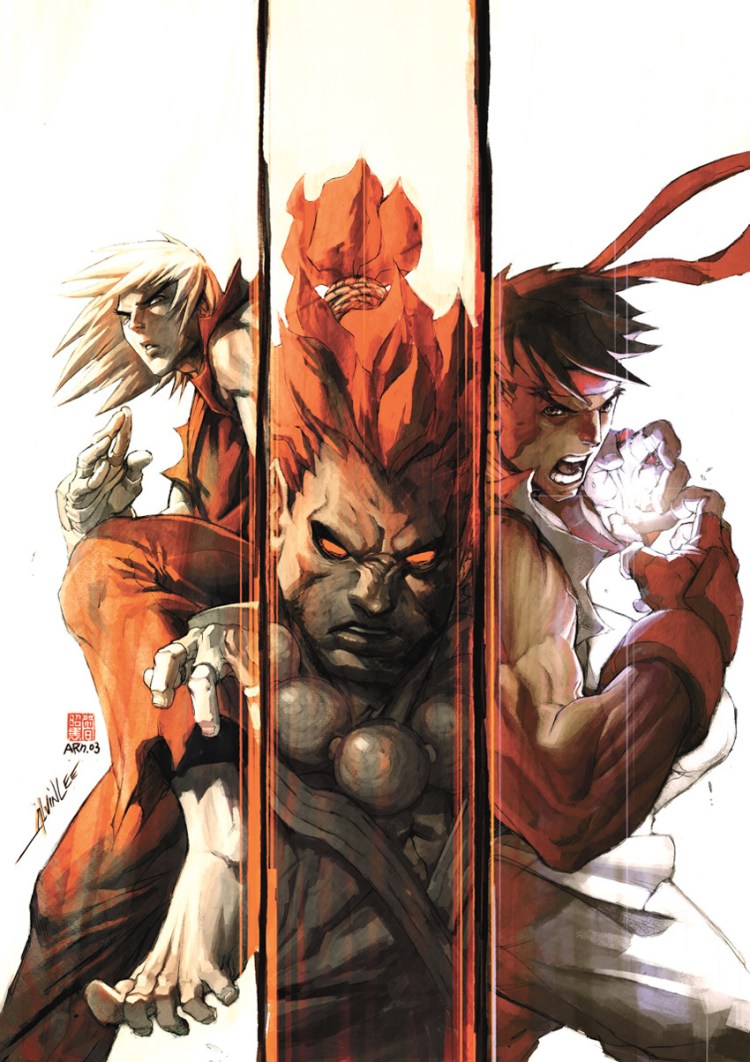 Rad Street Fighter fan art inked back in 2003 by Alvin Lee and given a colored sonic boom by Arnold Tsang. FIGHT!