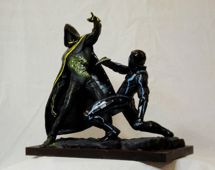 Video game / cinematic artist Herbert Lowis created an excellent TRON: Evolution face off sculpture betweenAbraxas and Anon.