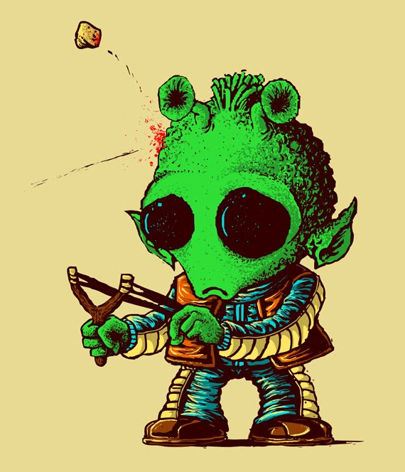 Little Greedo couldn’t even shoot first as a young Rodian bounty hunter. Vote this Star Wars shirt design up at Threadless to see it print.