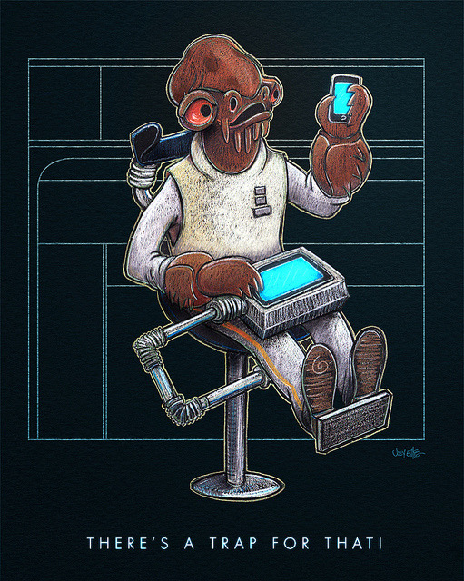 Admiral Akbar is quite the Apple geek. He stays alert on any new apps or traps with his iPad and iPhone. Hilarious commission piece created by Joey Ellis.
