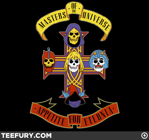 A little Guns N’ Roses mixed with the Masters of the Universe! This rocking mash up shirt design by Joey Spiotto is for sale Wed (02/16) at Teefury. Prints are available at his Etsy store.