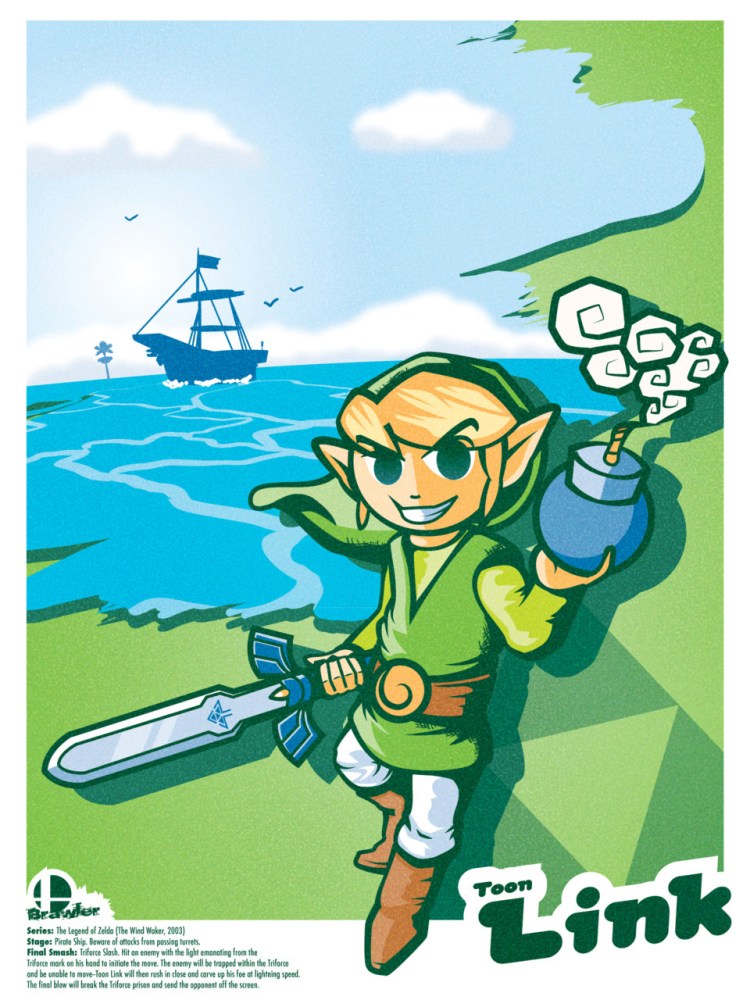 To commemorate the 25th Anniversary of the Zelda series, artist AadmM created an excellent Wind Waker / Smash Bros. poster design.
