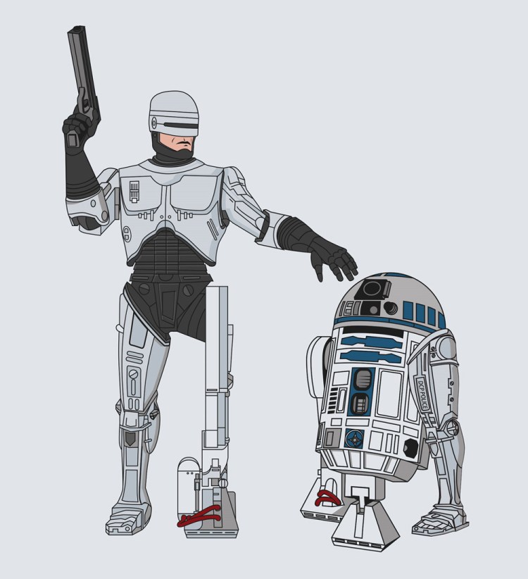 Alex Murphy (RoboCop) and R2-D2 exchange parts for the day thanks to Brandon Ortwein. You can get this design as a print over at Society6.