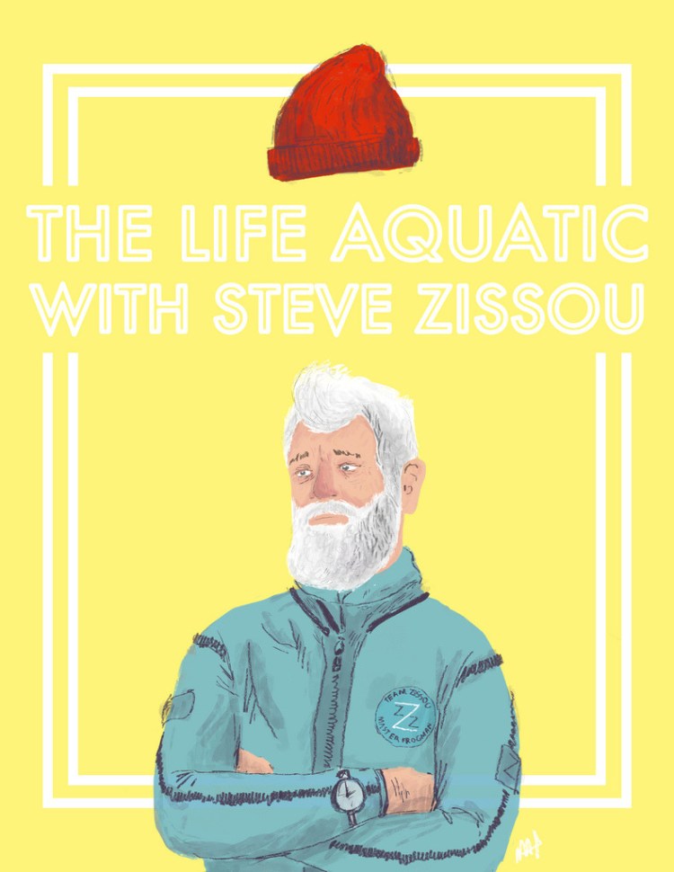 Excellent Steve Zissou / The Life Aquatic illustration by Mat Hudson! Follow the artist on Tumblr and get the above design as a print at his Society6 store.
