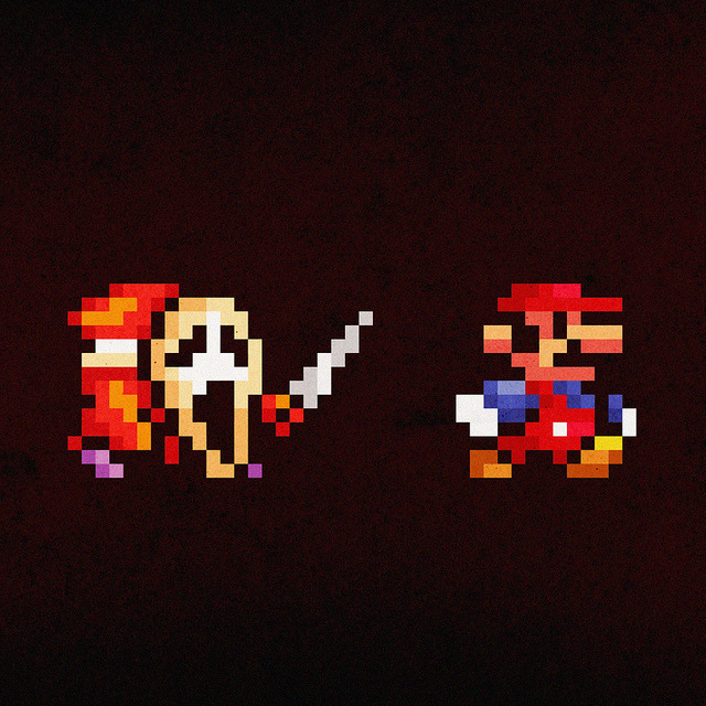 Never turn your back on the Shy Guy… It will be your last mistake! Excellent Mario Brothers / Scream mash up illustration by Aled Lewis.