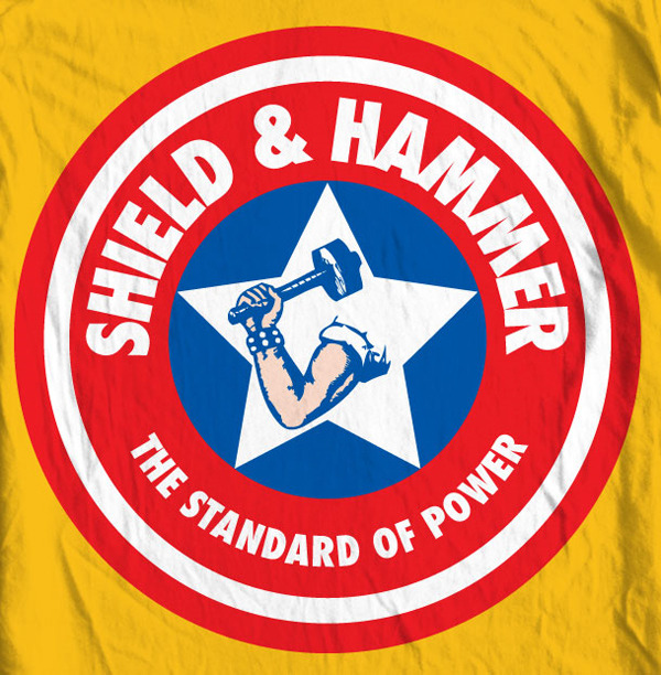 Marvel’s two upcoming films (Captain America & Thor) have been mashed up into one rad shirt design by Steven Anderson. Available now at RedBubble.