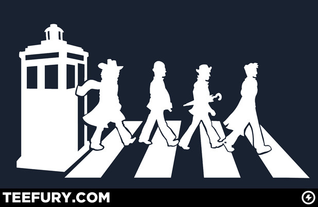 Doctor Who and the Beatles come together at Teefury today (3-26) thanks to Jacen Carpenter. Make sure that you also check out his full-size custom built Tardis that leads to his secret comic room HERE!