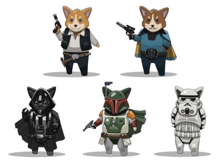 Chuck Middendorp gave a group of Welsh Corgis the roles of a few well known Star Wars characters. Lando Corgi’s mustache is quite stylish.